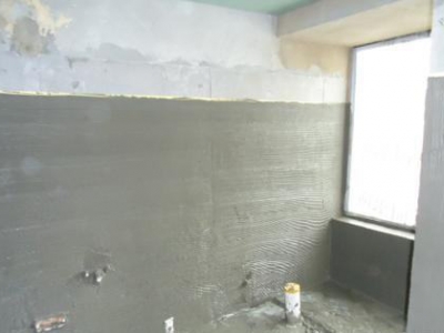 在墙与地面相接处,也包括角落部分,还有管与建筑效接处,这几个地方就要用高弹性的柔性防水涂料,这几个地方要特别注意,会漏水的地方经常是这几个地方。
